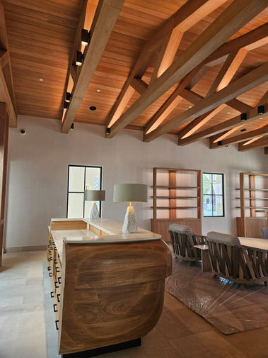 En este proyecto se ejecutó un acabado en estuco blanco pulido sobre muros, complementado con trabajos de pintura y detallado de plafones de tablaroca con acabado tipo 5.